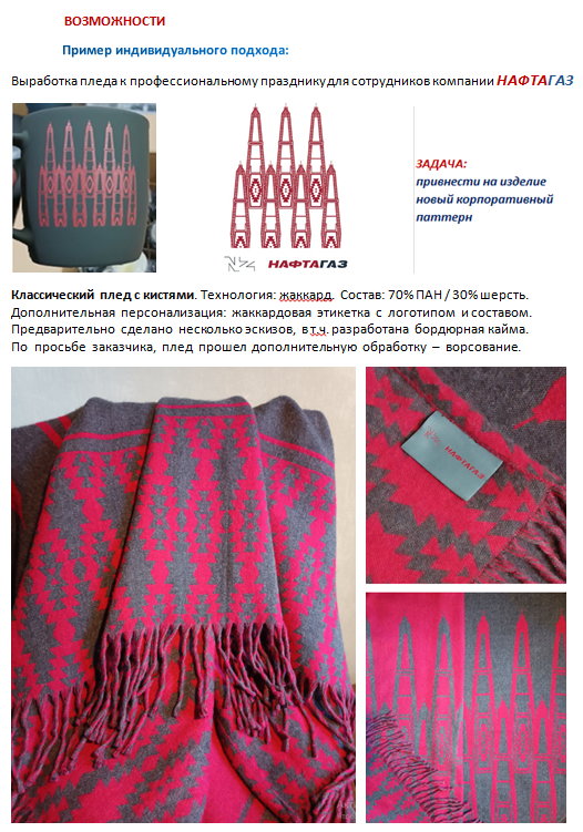 Пример. Выработка пледа с логотипом к профессиональному празднику компании НАФТАГАЗ